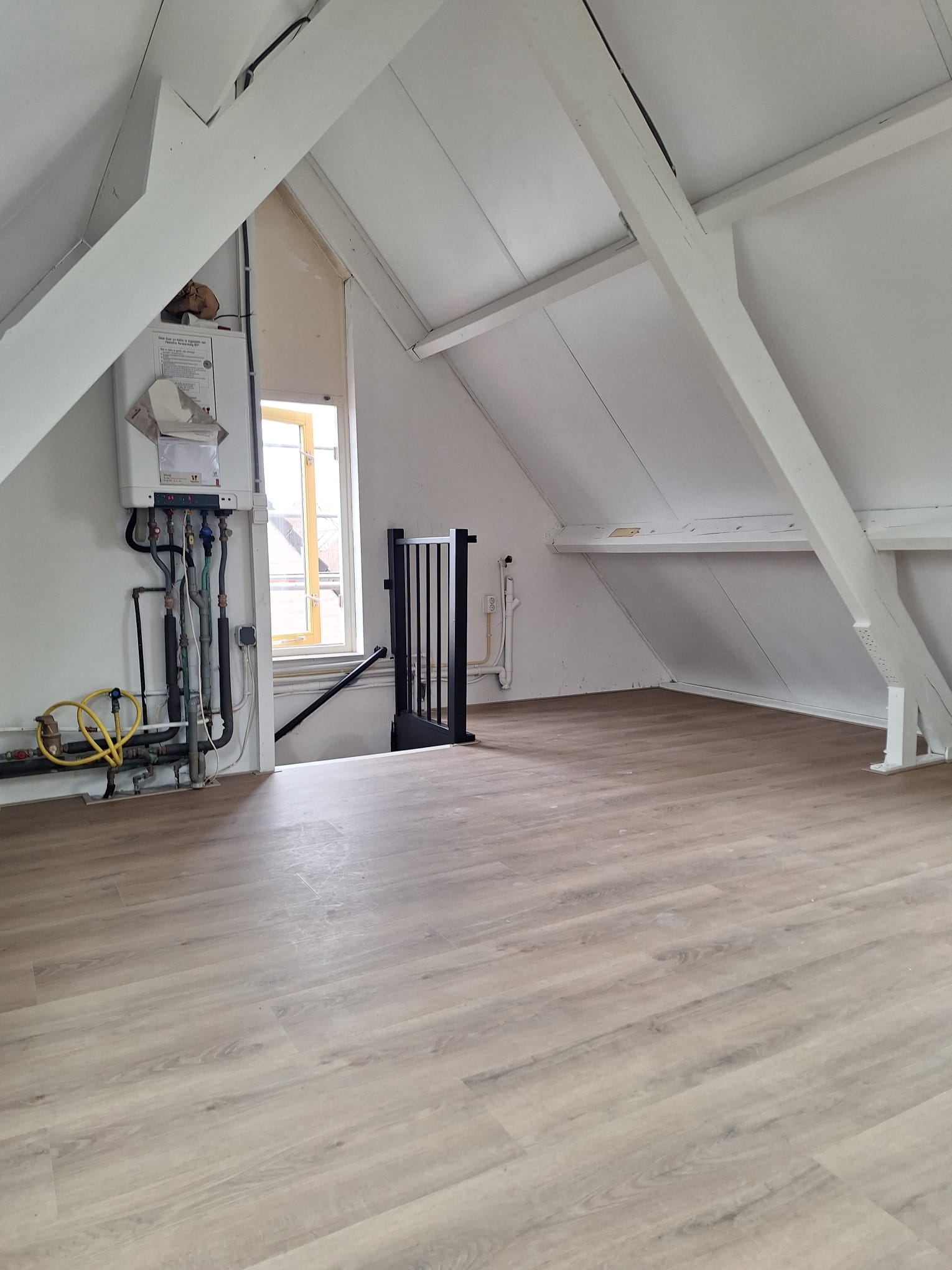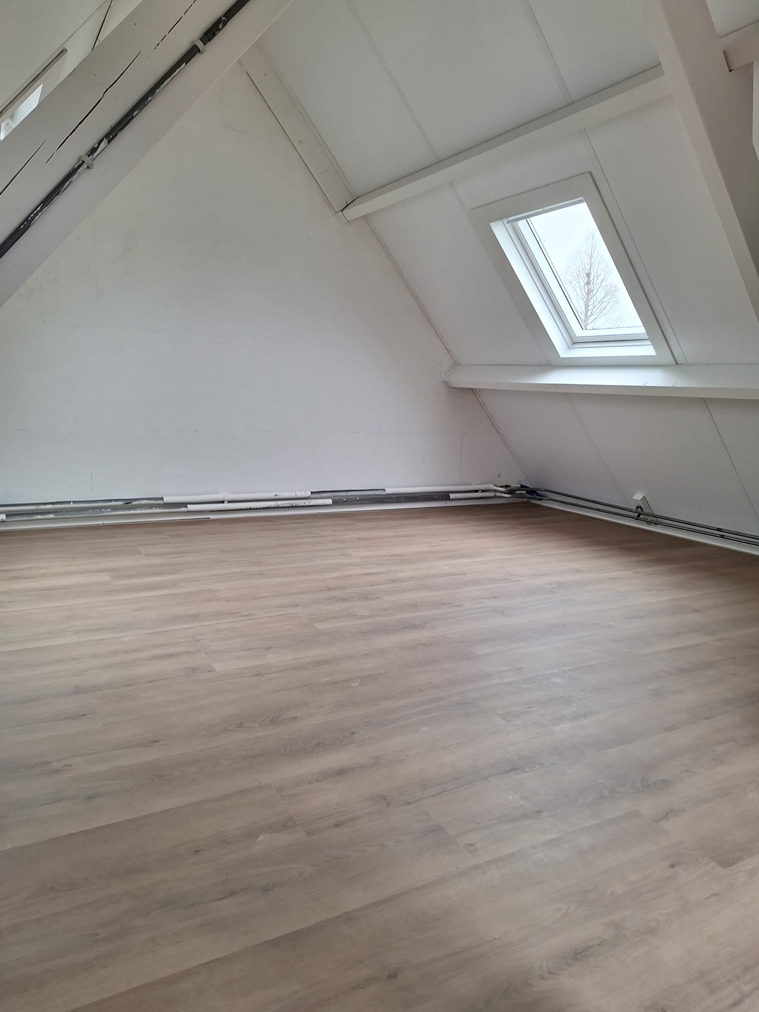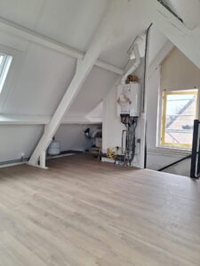 De zolder is voorzien van een hoogwaardige PVC klikvloer, strak gelegd en tot in detail afgewerkt met perfect gemonteerde plinten. Het vakmanschap zie je terug in iedere lijn en overgang: een rustige, luxe uitstraling met een afwerking waar kwaliteit centraal staat. Een extra compliment aan onze vakmensen Sjaak en Rick, die met oog voor detail hebben gezorgd voor een resultaat waar we trots op zijn.