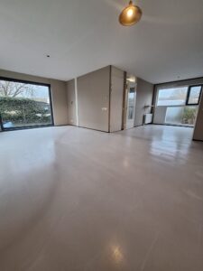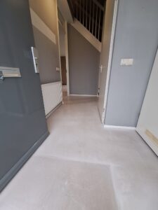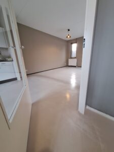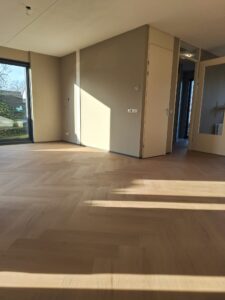 De ondergrond werd zorgvuldig voorbereid: primeren, egaliseren en alles tot in detail controleren. Want alleen met een strakke ondervloer krijg je een eindresultaat dat niet alleen mooi oogt, maar ook jarenlang meegaat. Van voorbereiding tot vloer om verliefd op te worden.