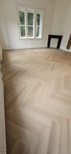 In de Dommer van Polderveldweg hebben Rick & Sjaak een prachtige PVC-vloer in visgraat gelegd, vooraf tot in perfectie geëgaliseerd voor een strakke en duurzame basis. De vloer loopt in één vloeiende lijn door de volledige bovenverdieping, waarbij het minimalistische karakter extra tot zijn recht komt doordat er geen plakplinten of hoge plinten zijn geplaatst. Het resultaat is een moderne, rustige en naadloze uitstraling—een vloer die meteen laat voelen dat alles klopt.